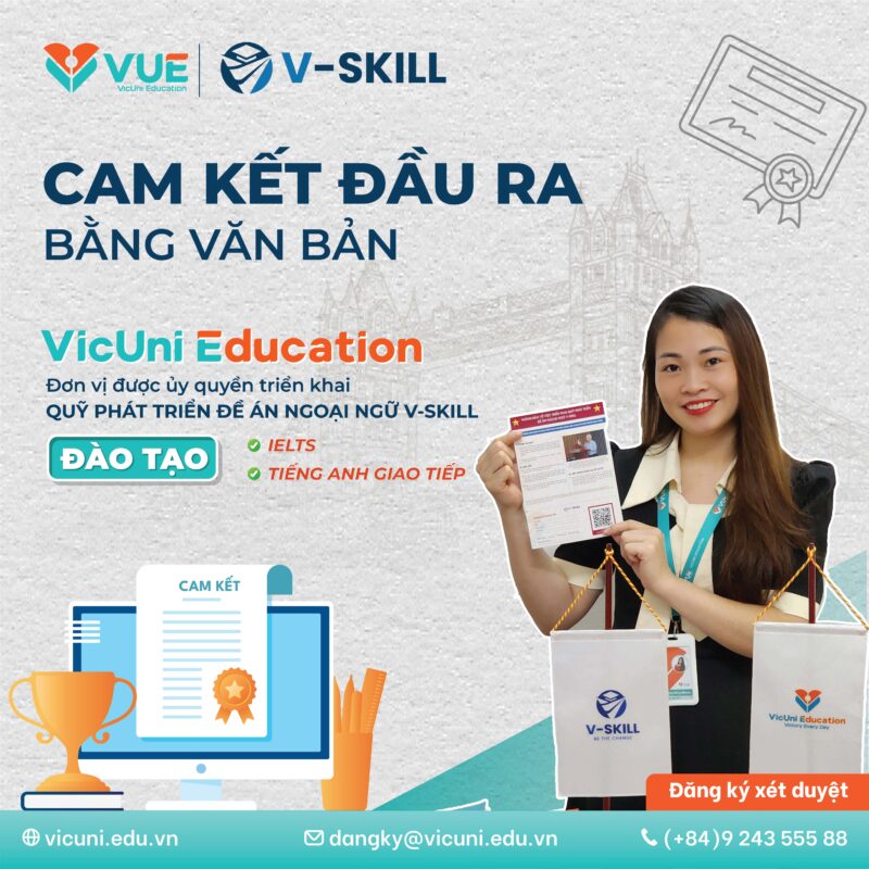 Trong thời đại số, việc học IELTS không còn là hành trình đơn độc. Với VicUni Education, bạn được học đúng hướng, có người đồng hành, và được bảo chứng bằng kết quả đầu ra rõ ràng. VicUni không chỉ dạy IELTS, mà còn giúp học viên làm chủ tiếng Anh học thuật, phát triển tư duy phản biện và năng lực toàn cầu – những kỹ năng thiết yếu của thế kỷ 21.